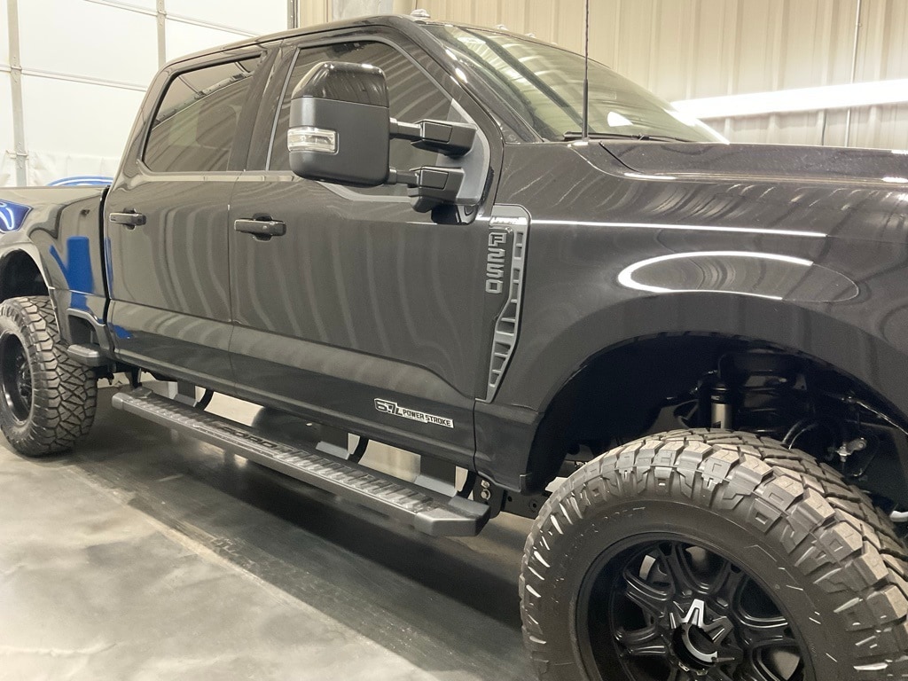 Agate Black Metallic 2024 Ford F-250SD Lariat Black Appearance Package 4WD 10-Speed Automatic Power Stroke 6.7L V8 DI 32V OHV Turbodiesel FRESH ARRIVAL!!, BLACK APPEARANCE PACKAGE!!, LIFT WHEEL AND TIRES!!, F-250 SuperDuty Lariat Black Appearance Package, 4D Crew Cab, Power Stroke 6.7L V8 DI 32V OHV Turbodiesel, 10-Speed Automatic, 4WD, Agate Black Metallic, Black Onyx Leather, 4-Way Adjustable Headrests, 410 Amp Dual Alternators, 6" Ebony Black Angular Running Boards, 8 Speakers, Adjustable pedals, AM/FM radio: SiriusXM with 360L, Automatic temperature control, Black Appearance Package, Body Color Front & Rear Bumpers, Dual 68 AH/65 AGM Batteries, Ebony Black Painted Front Grille Bars, Ebony Black Painted Mirror Caps, Engine Block Heater, F-250 >10K GVWR Package, Front Bucket Seats, Front Center Armrest, Front Sensing System, FX4 Off-Road Package, Head-Up Display, Heated Front Seats, Heated Rear Seats, Hill Start Assist, Intelligent Adaptive Cruise Control w/Stop-and-Go, Lariat Ultimate Package, Memory seat, Navigation system: Connected Navigation (includes complimentary 1-year trial), Off-Road Specifically Tuned Shock Absorbers, Order Code 608A, Pedal memory, Power driver seat, Power passenger seat, Power steering, Power-Deployable Running Boards, Pro Trailer Backup Assist, Pro Trailer Hitch Assist, Radio: B&O Sound System by Bang & Olufsen, Radio: B&O Unleashed Sound System by Bang & Olufsen, Rear Wheel Well Liners (Pre-Installed), SiriusXM Radio w/360L, Split folding rear seat, SYNC 4 w/Enhanced Voice Recognition, Tailgate Step & Handle, Tough Bed Spray-In Bedliner, Unique FX4 Off-Road Box Decal, Upfitter Switches (6), Ventilated front seats, Wheels: 20" Machined & Ebony Black High Gloss, Wireless Charging Pad. Price includes: $3000 - Model Year Closeout Bonus Cash - Super Duty. Exp. 12/01/2025