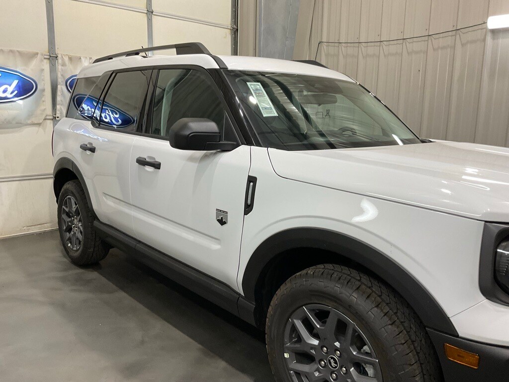 New Price! Oxford White 2025 Ford Bronco Sport Big Bend 4WD 8-Speed Automatic 1.5L EcoBoost Bronco Sport Big Bend, 4D Sport Utility, 1.5L EcoBoost, 8-Speed Automatic, 4WD, Oxford White, Medium Light Smoked Truffle w/Cloth w/Easy-to-Clean Front Bucket Seats, 110V/400W AC Power Outlet, 2nd Row Carpeted Seatback, Auxiliary Switches & Wiring, Black Diamond Off-Road Package, Brush Guard, Cargo Management System (Shelf/Divider/Table), Cargo Mat, Class II Trailer Tow Pack w/Trailer Sway Control, Equipment Group 200A, Fender Tie Downs, Front & Rear Black Bumpers, Interior Grab Handle, Recovery Hooks, Wheels: 17" Carbonized Gray Painted Aluminum.