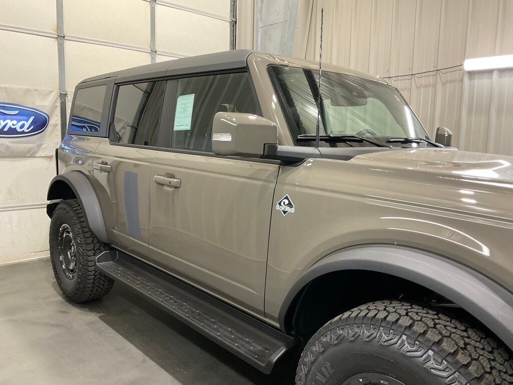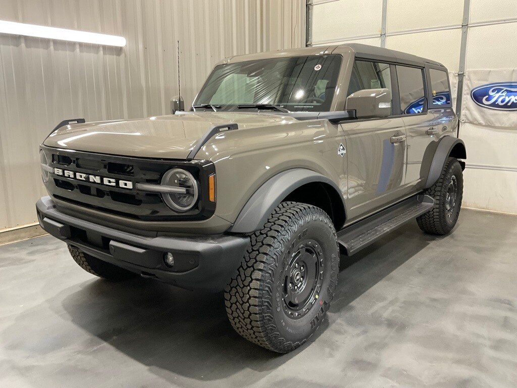 Marsh Gray 2025 Ford Bronco Outer Banks 4WD 10-Speed Automatic 2.7L EcoBoost V6 Bronco Outer Banks Advanced, 4D Sport Utility, 2.7L EcoBoost V6, 4WD, Marsh Gray, Smoked Truffle w/Black Onyx w/Heated Leather-Trimmed/Vinyl Bucket Seats, 360-Degree Camera, 4.7 Final Drive Ratio, Adaptive Cruise Control, Alloy wheels, Carbonized Gray Molded-In-Color Hard Top, Equipment Group 314A Lux Package, Evasive Steering Assist, Front Parking Sensors, High Clearance Fender Flares, High Clearance Suspension, Information on Demand Panel, Navigation system: Connected Navigation, Position-Sensitive Bilstein Shock Absorbers, Radio: B&O Sound System by Bang & Olufsen, Rear-Window Defroster & Washer, Sasquatch Package, Sideview Mirrors, Universal Garage Door Opener, Wheels: 17" Carbonized Gray Painted Aluminum. Price includes: $2000 - Retail Bonus Cash. Exp. 11/19/2025