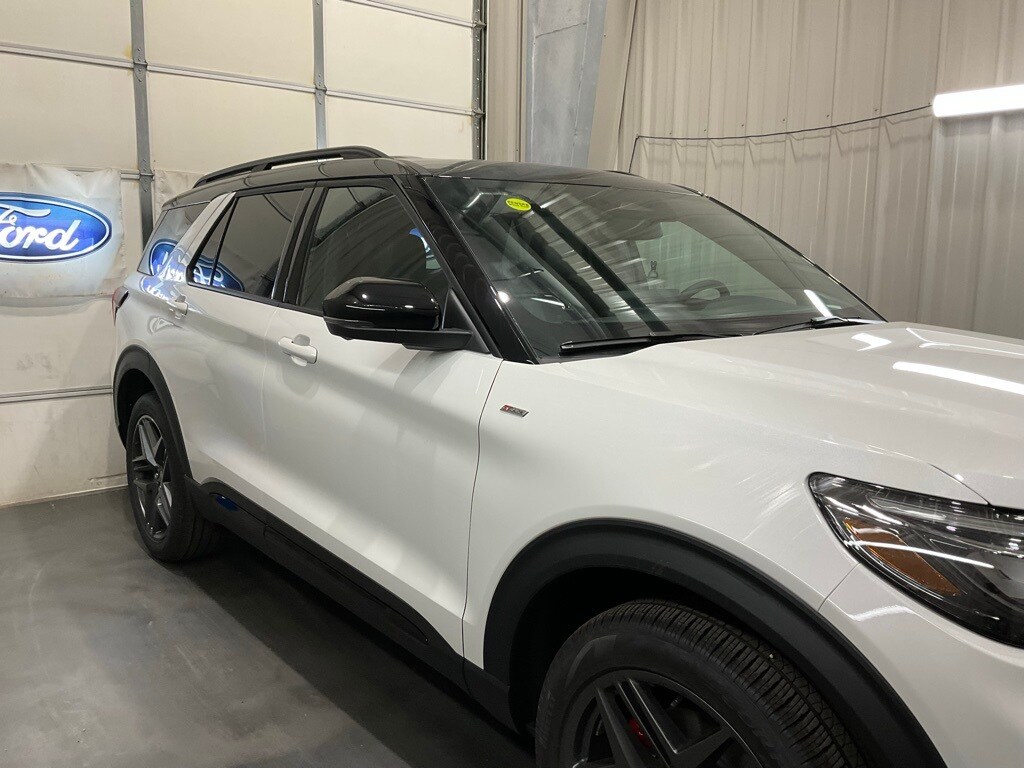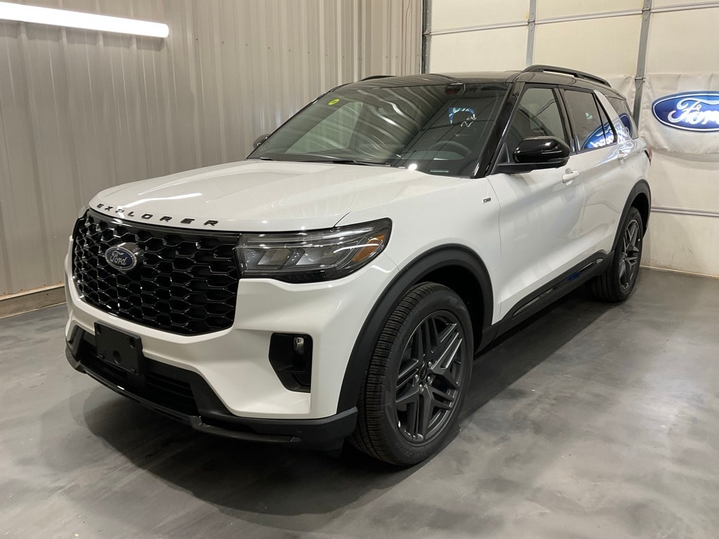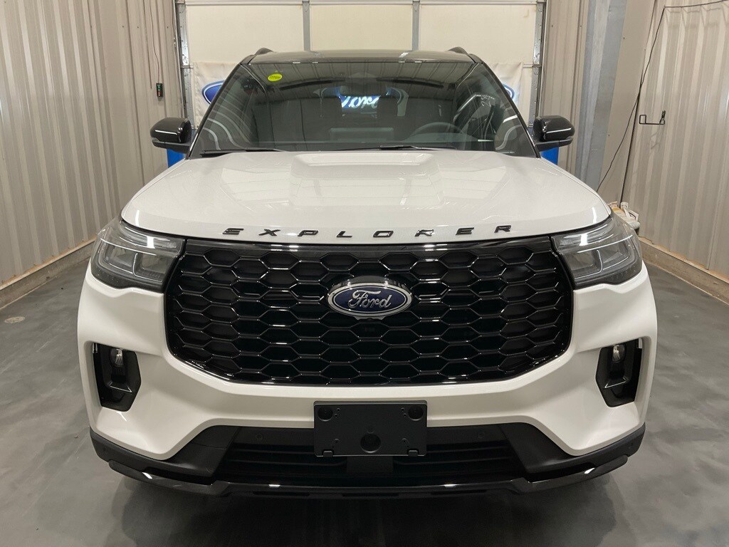 Star White Metallic Tri-Coat 2025 Ford Explorer ST-Line 4WD 10-Speed Automatic 2.3L EcoBoost I-4 Explorer ST-Line, 4D Sport Utility, 2.3L EcoBoost I-4, 4WD, Star White Metallic Tri-Coat, 110V/150W AC Power Outlet, 2nd Row Heated Seats, Ambient Lighting, Auto-Dimming Interior Rear-View Mirror, Equipment Group 300A Standard Package, Memory Driver's Seat, Navigation System, Performance Brakes, Power-Folding Sideview Mirrors w/Autofold, Premium Package, Rain-Sensing Wipers (Front Only), Red Painted Perf Front & Rear Brake Calipers, ST-Line Street Pack, Wheels: 21" Magnetite-Painted Aluminum, Wireless Charging Pad.