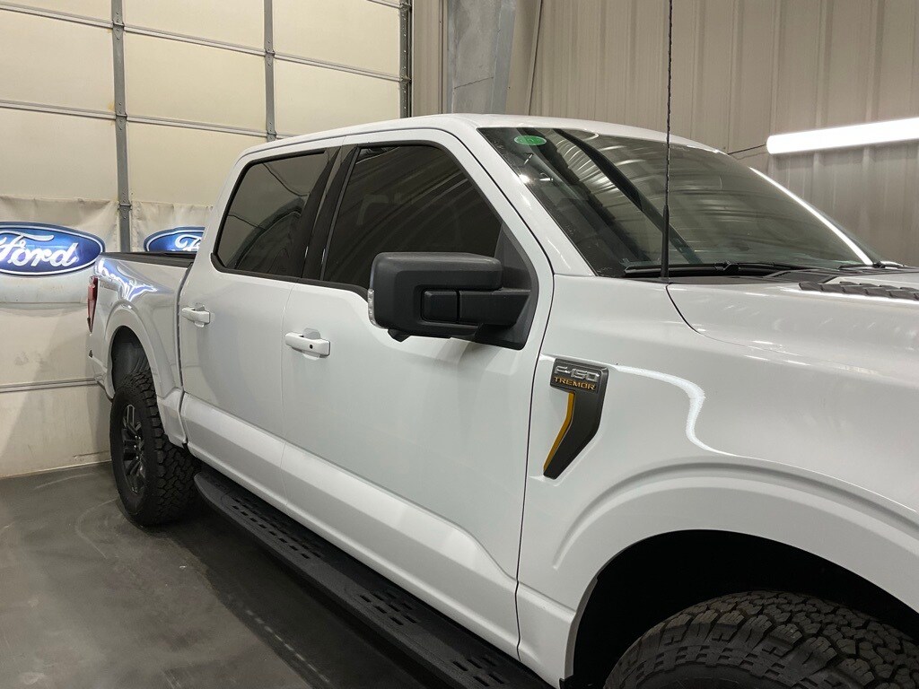 Oxford White 2025 Ford F-150 Tremor 4WD 10-Speed Automatic 3.5L V6 EcoBoost F-150 Tremor, 4D SuperCrew, 3.5L V6 EcoBoost, 4WD, Oxford White, 4 Pickup Box Tie-Down Plates, Bed Utility Package, Equipment Group 401A Standard, Integrated Trailer Brake Controller, LED Box Lighting, Navigation system: Connected Navigation, Power Tailgate, Tow/Haul Package.