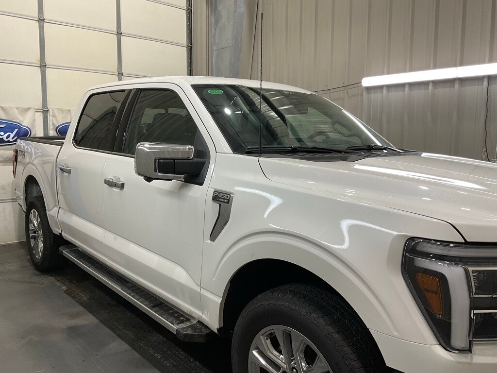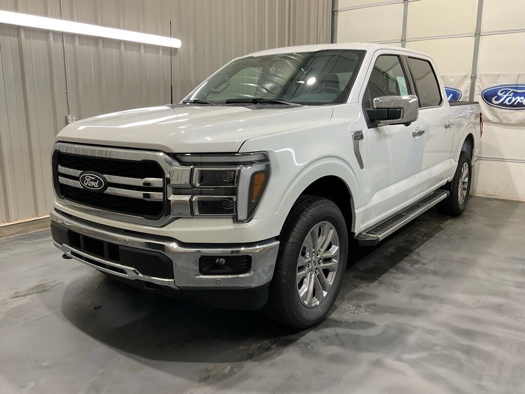 White 2025 Ford F-150 Lariat 4WD 10-Speed Automatic 3.5L V6 EcoBoost F-150 Lariat, 4D SuperCrew, 3.5L V6 EcoBoost, 4WD, White, Black/Medium Dark Slate w/ActiveX Trimmed Bucket Seats, 4x4 FX4 Off-Road Bodyside Decal, 6" Angular Bright Anodized Step Bar, Electronic Locking w/3.31 Axle Ratio, Equipment Group 501A Mid, FX4 Off-Road Package, Hill Start Assist, Illuminated Driver & Passenger Visors, Monotube Rear Shocks, Navigation system: Connected Navigation, Off-Road Tuned Front Shock Absorbers, Power-Sliding Rear Window, Rock Crawl Mode, Tray Style Floor Liner w/o Carpet Mats, Wheels: 20" Chrome-Like PVD. Price includes: $500 - Retail Bonus Cash. Exp. 01/05/2026