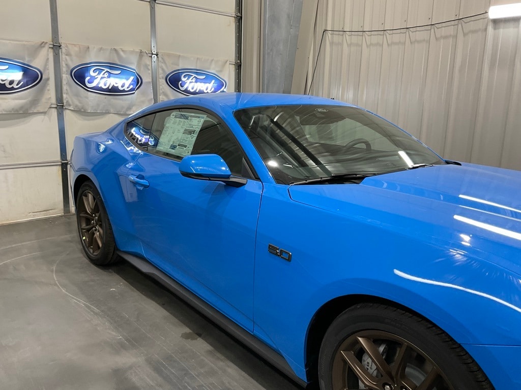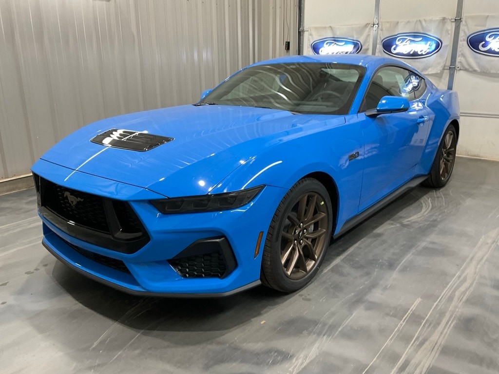 Blue 2025 Ford Mustang GT Premium RWD 10-Speed Automatic 5.0L V8 Ti-VCT Mustang GT Premium, 2D Coupe, 5.0L V8 Ti-VCT, 10-Speed Automatic, Blue, ABS brakes, Active Anti-Theft System, Alloy wheels, Bronze Appearance Package, Compass, Connected Navigation, Driver Seat & Mirrors Memory, Electronic Stability Control, Equipment Group 401A High Package, Ford Co-Pilot360 Assist+, Front dual zone A/C, Heated door mirrors, Heated Front Seats, Illuminated Door-Sill Scuff Plates, Illuminated entry, Integrated Turn Signals, Leather-Trimmed Bucket Seats w/Color Accents, Locking Center Console, Low tire pressure warning, Pre-Collision Assist w/Automatic Emergency Braking, Remote keyless entry, Security Package, Sinister Bronze GT 5.0 & Pony Badges, Traction control, Wheel Locking Kit. Price includes: $3500 - Retail Customer Cash. Exp. 01/05/2026