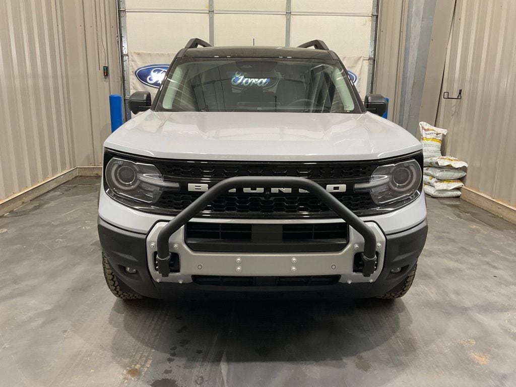 Class II Trailer Tow Package with Trailer Sway Control, Ford Connectivity Package (1-Year Included), Internet access capable: 5G Modem - Ford Connectivity Package, Outer Banks Tech Package+ (Connected Navigation (1-Year Included) and Radio: HD w/B&O Sound System by Bang & Olufsen), Sasquatch Outer Banks Package (12.3" Cluster Display, 2 Rear D-Ring Recovery Hooks, 2nd Row Carpeted Seatback, 400W Pro Power Onboard, Auxiliary Switches and Wiring, Front and Rear Black Bumpers with Steel Plates, Front Brush Guard with Integrated Recovery Hooks, High Clearance Fender Flares, HOSS 2.0 Off-Road Suspension, Rubberized Flooring, Trail Control with Trail One-Pedal Drive, and Wheels: 17" Ebony Black-Painted Aluminum), Bronco Sport Outer Banks, 4D Sport Utility, 1.5L EcoBoost, 4WD, White, 4-Wheel Disc Brakes, 6 Speakers, ABS brakes, Air Conditioning, Alloy wheels, AM/FM radio: SiriusXM with 360L, AM/FM Stereo, Apple CarPlay/Android Auto, Auto High-beam Headlights, Auto-dimming Rear-View mirror, Automatic temperature control, Brake assist, Compass, Delay-off headlights, Driver door bin, Driver vanity mirror, Dual front impact airbags, Dual front side impact airbags, Electronic Stability Control, Emergency communication system: SYNC 4 911 Assist, Four wheel independent suspension, Front anti-roll bar, Front Bucket Seats, Front Center Armrest, Front Driver/Passenger Seat Back Map Pockets, Front dual zone A/C, Front fog lights, Front reading lights, Fully automatic headlights, Heated door mirrors, Heated Front Seats, Heated steering wheel, Illuminated entry, Knee airbag, Low tire pressure warning, Memory seat, Occupant sensing airbag, Outside temperature display, Overhead airbag, Overhead console, Panic alarm, Passenger door bin, Passenger vanity mirror, Power door mirrors, Power driver seat, Power passenger seat, Power steering, Power windows, Radio data system, Rear anti-roll bar, Rear Parking Sensors, Rear reading lights, Rear seat center armrest, Rear View Camera, Rear window defroster, Rear window wiper, Remote keyless entry, Security system, SiriusXM with 360L, Speed control, Speed-sensing steering, Speed-Sensitive Wipers, Split folding rear seat, Steering wheel mounted audio controls, SYNC 4 with Enhanced Voice Recognition, Tachometer, Telescoping steering wheel, Tilt steering wheel, Traction control, Trip computer, Variably intermittent wipers, and Wheels: 18" Ebony Black. 25/30 City/Highway MPG