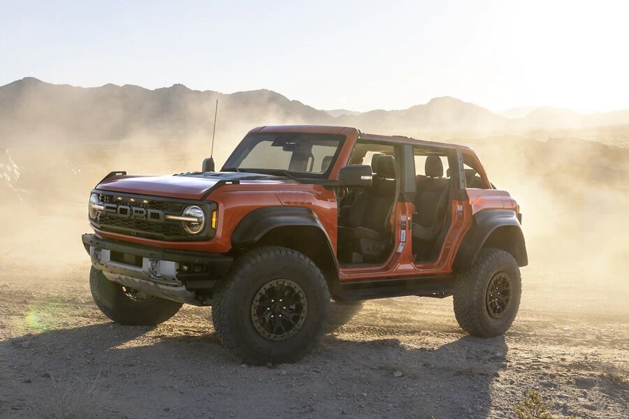 Meet the 2022 Ford Bronco® Raptor,™ the world's first Ultra4 Racing-inspired SUV. Built to take on the toughest terrain at high speed and for confident rock crawling - it's truly Built Wild.™Preproduction model shown with optional equipment. Removal of doors for off-road use only. See Bronco Owner's Manual for detailed information. Always consult the Owner's Manual before off-road driving, know your terrain and trail difficulty, and use appropriate safety gear. Available summer 2022.