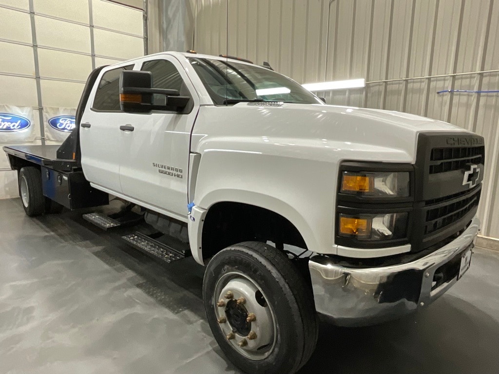 Snow Plow Prep Package (3' Auxiliary Harness For Headlamps & Turn Signals and Provision For Cab Roof Mounted Lamp/Beacon), Silverado 4500HD Work Truck, 4D Crew Cab, Duramax 6.6L V8 Turbodiesel, 4WD, White, Dark Ash Seats With Jet Black Interior Accents Vinyl, 10-Way Power Driver's Seat Adjuster, 110-Volt AC Power Outlet, 20 Gallons Additional Fuel, 34,000 lbs. GCWR (15,422 kg), 4.30 Rear Axle Ratio, 40/20/40 Front 3-Passenger Split Bench Seat, 4G LTE Wi-Fi Hotspot Capable, 6 Speakers, 6-Speaker Audio System, ABS brakes, Air Conditioning, Backup Alarm, Black Frame-Mounted Front Recovery Hooks, Chevrolet Connected Access Capable, Chrome Front Bumper, Cloth Seat Trim, Delay-off headlights, Driver door bin, Dual front impact airbags, Dual front side impact airbags, Dual rear wheels, Electronic Stability Control, Engine Block Heater, Front Center Armrest w/Storage, Front License Plate Kit, Front reading lights, Front Stabilizer Bar, Frontal Passenger-Side Airbag Deactivation Switch, Fully automatic headlights, Limited-Slip Axle, Manual Regeneration Diesel Particulate Filter DPF, Occupant sensing airbag, OnStar & Chevrolet Connected Services Capable, Overhead airbag, Overhead console, Passenger cancellable airbag, Passenger door bin, Power steering, Power Take-Off Engine Control Provisions, Power windows, Power Windows w/Driver Express Up & Down, Premium audio system: Chevrolet MyLink, Rear reading lights, Rear seat center armrest, Rear Shock Absorbers, Rear View Camera, Remote Keyless Entry, Single-Slot CD/MP3 Player, Single-Zone Air Conditioning, SiriusXM Radio, Speed control, Split folding rear seat, Steel Frame-Mounted Skid Plate, Stone Protection Grille Guard Screen, Tachometer, Tail Lamp Wiring Harness Provisions, Tilt steering wheel, Tool Kit w/Rim Wrench & Handle Only, Traction control, Trip computer, Variably intermittent wipers, Voltmeter, Wheels: 19.5" x 6.75" Black Painted Hub Piloted Steel w/8-Holes, and Wheels: 19.5" x 6.75" Gray Painted Hub Piloted Steel w/8-Holes.