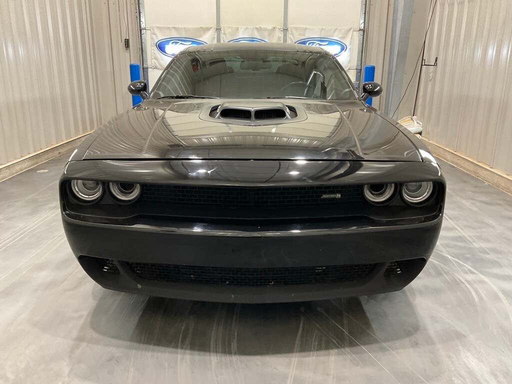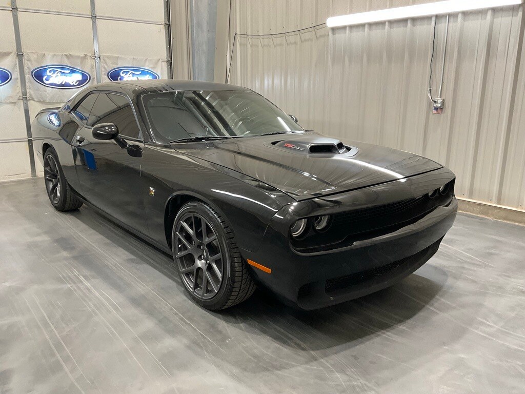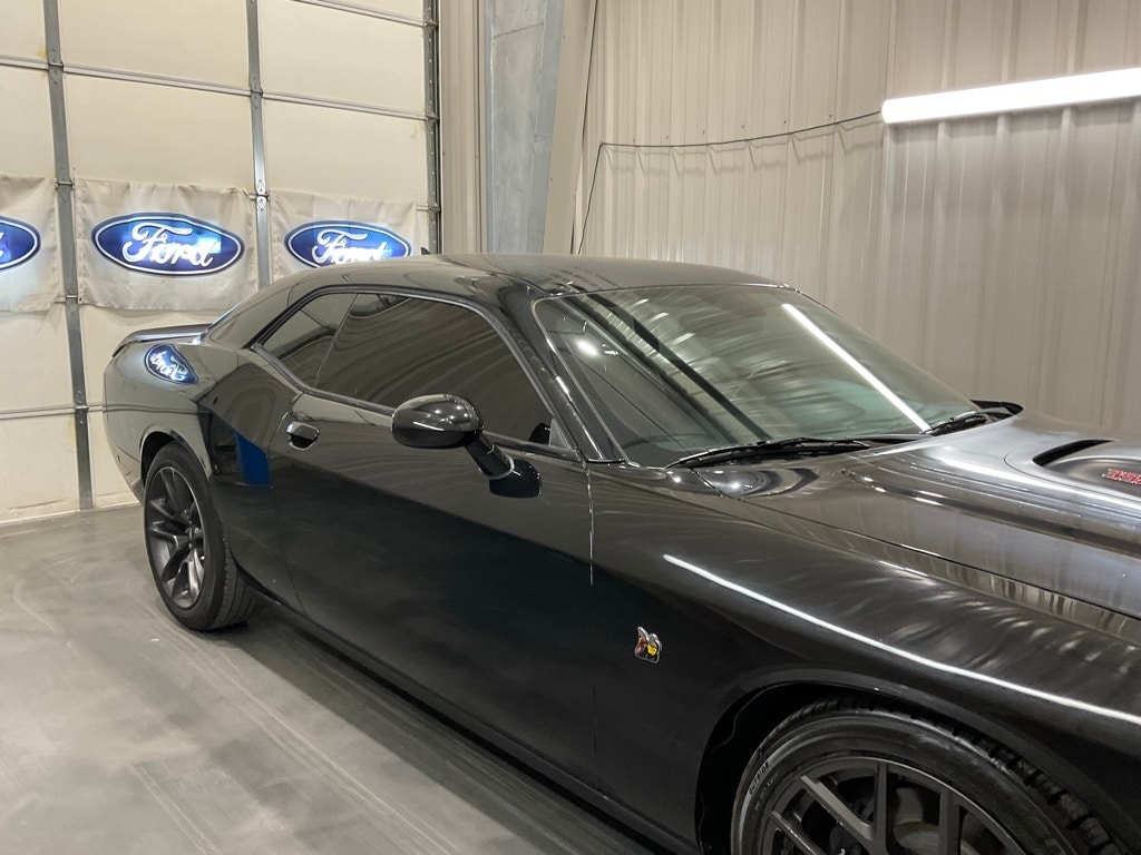 Driver Convenience Group (Blind Spot & Cross Path Detection, High-Intensity Discharge Headlamps, and Power Multi-Function Foldaway Mirrors), Plus Package (Door Trim Panel w/Ambient Lighting, Heated Steering Wheel, Power Tilt/Telescope Steering Column, Premium-Stitched Dash Panel, and Radio/Driver Seat/Mirrors Memory), Quick Order Package 23G R/T Scat Pack, Shaker Package (Bee Fender Badge, Dash Plaque, Gloss Black I/P Cluster Trim Rings, MOPAR Shaker Hood, MOPAR Shaker Intake, Shaker Mounted 392 HEMI Badge, Underhood Shaker Decal, and White Face Instrument Cluster), Challenger R/T Scat Pack, 2D Coupe, SRT HEMI 6.4L V8, RWD, Pitch Black Clearcoat, Ruby Red/Black Leather, 1-Yr SiriusXM Guardian Trial, 230MM Rear Axle, 4-Wheel Disc Brakes, 4G LTE Wi-Fi Hot Spot, 5-Year SiriusXM Traffic Service, 5-Year SiriusXM Travel Link Service, 6 Speakers, 8.4" Touchscreen Display, ABS brakes, Air Conditioning, Alloy wheels, AM/FM radio: SiriusXM, Anti-whiplash front head restraints, Apple CarPlay, Apple CarPlay/Android Auto, Auto-dimming Rear-View mirror, Automatic temperature control, Brake assist, Bumpers: body-color, Compass, Delay-off headlights, Driver door bin, Driver vanity mirror, Dual front impact airbags, Dual front side impact airbags, Electronic Stability Control, Emergency communication system: SiriusXM Guardian, For Details, Visit DriveUconnect.com, Four wheel independent suspension, Front anti-roll bar, Front Bucket Seats, Front Center Armrest, Front dual zone A/C, Front fog lights, Front reading lights, Fully automatic headlights, Garage door transmitter, Google Android Auto, GPS Antenna Input, GPS Navigation, HD Radio, Heated door mirrors, Heated Front Seats, Heated steering wheel, Illuminated entry, Integrated Center Stack Radio, Integrated Voice Command w/Bluetooth, Leather Shift Knob, Low tire pressure warning, Media Hub (2 USB, AUX), Outside temperature display, Overhead airbag, Overhead console, Panic alarm, ParkView Rear Back-Up Camera, Passenger door bin, Passenger vanity mirror, Power door mirrors, Power driver seat, Power steering, Power windows, Radio data system, Radio: Uconnect 4C Nav w/8.4" Display, Radio: Uconnect 4C w/8.4" Display, Rear anti-roll bar, Rear reading lights, Rear seat center armrest, Rear window defroster, Red-Edged Premium Floormats, Remote keyless entry, Scat Pack Logo Houndstooth Seat, Security system, Shark Fin Antenna, SiriusXM Satellite Radio, SiriusXM Traffic Plus, SiriusXM Travel Link, Speed control, Speed-sensing steering, Split folding rear seat, Spoiler, Sport steering wheel, SRT Performance Spoiler, Steering wheel mounted audio controls, Tachometer, Telescoping steering wheel, Tilt steering wheel, Traction control, Trip computer, USB Host Flip, Variably intermittent wipers, and Wheels: 20" x 9" Lo Gloss Granite CrystaL.