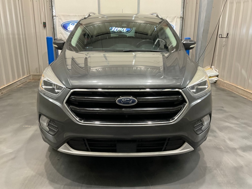 2.0L EcoBoost Class II Trailer Tow Package (Auxiliary Transmission Oil Cooler), Equipment Group 400A, Ford Safe and Smart Titanium Plus Package (Adaptive Cruise Control & Fwd Collision Warning, Auto High-Beam Headlamps, Blind Spot Info System w/Cross-Traffic Alert, Lane-Keeping System, Panoramic Vista Roof, and Rain-Sensing Wipers), U0J04 - Titanium Safe/Smart & Tow Package, Escape Titanium, 4D Sport Utility, EcoBoost 2.0L I4 GTDi DOHC Turbocharged VCT, FWD, Magnetic, Charcoal Black Leather, Navigation System, 10 Speakers, 3.07 Axle Ratio, 4-Wheel Disc Brakes, ABS brakes, Air Conditioning, Alloy wheels, AM/FM radio: SiriusXM, AppLink/Apple CarPlay and Android Auto, Auto-dimming Rear-View mirror, Automatic temperature control, Brake assist, Bumpers: body-color, Cargo Mat, Compass, Delay-off headlights, Driver door bin, Driver vanity mirror, Dual front impact airbags, Dual front side impact airbags, Electronic Stability Control, Emergency communication system: SYNC 3 911 Assist, FordPass Connect, Four wheel independent suspension, Front anti-roll bar, Front Bucket Seats, Front Center Armrest, Front dual zone A/C, Front fog lights, Front reading lights, Fully automatic headlights, Garage door transmitter, Heated door mirrors, Heated Front Seats, Heated Leather-Trimmed Front Bucket Seats, Heated steering wheel, High-Intensity Discharge Headlights, Illuminated entry, Interior Cargo Cover, Knee airbag, Leather Shift Knob, Low tire pressure warning, Memory seat, Occupant sensing airbag, Outside temperature display, Overhead airbag, Overhead console, Panic alarm, Passenger door bin, Passenger vanity mirror, Power door mirrors, Power driver seat, Power Liftgate, Power passenger seat, Power steering, Power windows, Radio data system, Radio: AM/FM Stereo w/MP3 Capable, Rear anti-roll bar, Rear reading lights, Rear seat center armrest, Rear View Camera, Rear window defroster, Rear window wiper, Remote keyless entry, Roof rack: rails only, Security system, Speed control, Speed-sensing steering, Split folding rear seat, Steering wheel mounted audio controls, SYNC 3 Communications & Entertainment System, Tachometer, Telescoping steering wheel, Tilt steering wheel, Traction control, Trip computer, Turn signal indicator mirrors, Variably intermittent wipers, Voice-Activated Touchscreen Navigation System, and Wheels: 19" Bright-Machined Aluminum.
