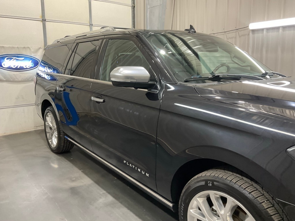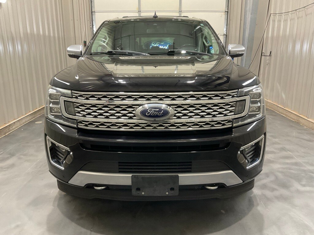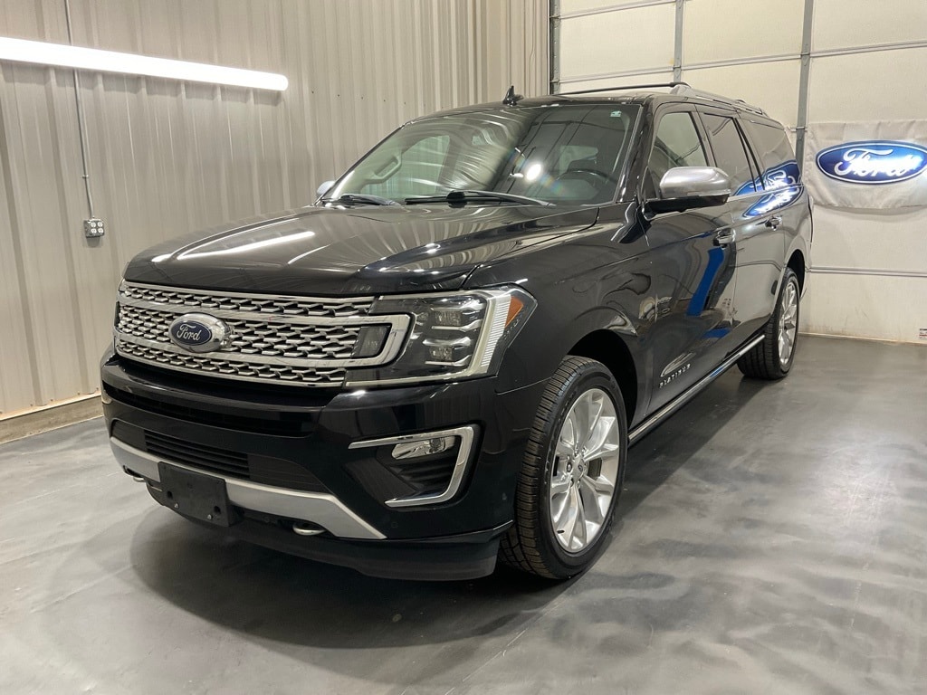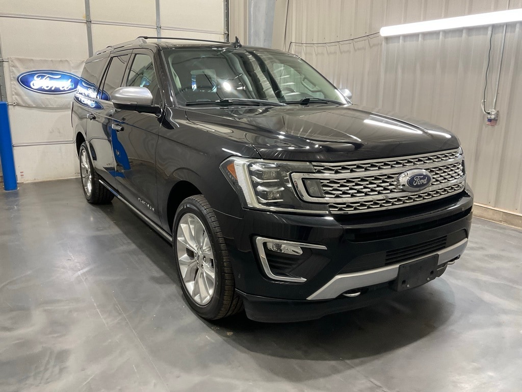 Equipment Group 600A, Expedition Max Platinum, 4D Sport Utility, EcoBoost 3.5L V6 GTDi DOHC 24V Twin Turbocharged, 4WD, Black, Ebony Leather, 12 Speakers, 22" Polished Aluminum Wheels, 2nd Row Bucket Seats, 3.31 Axle Ratio, 3rd row seats: split-bench, 4-Wheel Disc Brakes, ABS brakes, Adaptive suspension, Adjustable pedals, Air Conditioning, Alloy wheels, AM/FM radio: SiriusXM, AppLink/Apple CarPlay and Android Auto, Auto High-beam Headlights, Auto-dimming door mirrors, Auto-dimming Rear-View mirror, Automatic temperature control, Brake assist, Bumpers: body-color, Compass, Delay-off headlights, Driver door bin, Driver vanity mirror, Dual front impact airbags, Dual front side impact airbags, Electronic Stability Control, Emergency communication system: SYNC 3 911 Assist, Four wheel independent suspension, Front anti-roll bar, Front Bucket Seats, Front Center Armrest, Front dual zone A/C, Front fog lights, Front reading lights, Fully automatic headlights, Garage door transmitter, Genuine wood console insert, Genuine wood dashboard insert, Genuine wood door panel insert, Heated & Cooled Perforated Leather Fr Bucket Seats, Heated door mirrors, Heated Front Seats, Heated Rear Seats, Heated steering wheel, Illuminated entry, Lane Departure Warning System, Leather steering wheel, Low tire pressure warning, Memory seat, Navigation System, Occupant sensing airbag, Outside temperature display, Overhead airbag, Overhead console, Panic alarm, Passenger door bin, Passenger vanity mirror, Pedal memory, Power door mirrors, Power driver seat, Power Liftgate, Power Moonroof, Power passenger seat, Power steering, Power windows, Radio data system, Radio: B&O Sound System by Bang & Olufsen, Rain sensing wipers, Rear air conditioning, Rear anti-roll bar, Rear audio controls, Rear reading lights, Rear View Camera, Rear window defroster, Rear window wiper, Reclining 3rd row seat, Remote keyless entry, Reversible Cargo Mat, Roof rack, Security system, SiriusXM Satellite Radio, Speed control, Speed-sensing steering, Speed-Sensitive Wipers, Split folding rear seat, Steering wheel memory, Steering wheel mounted audio controls, SYNC 3 Communications & Entertainment System, Tachometer, Telescoping steering wheel, Tilt steering wheel, Traction control, Trip computer, Turn signal indicator mirrors, Variably intermittent wipers, Ventilated front seats, and Voltmeter.