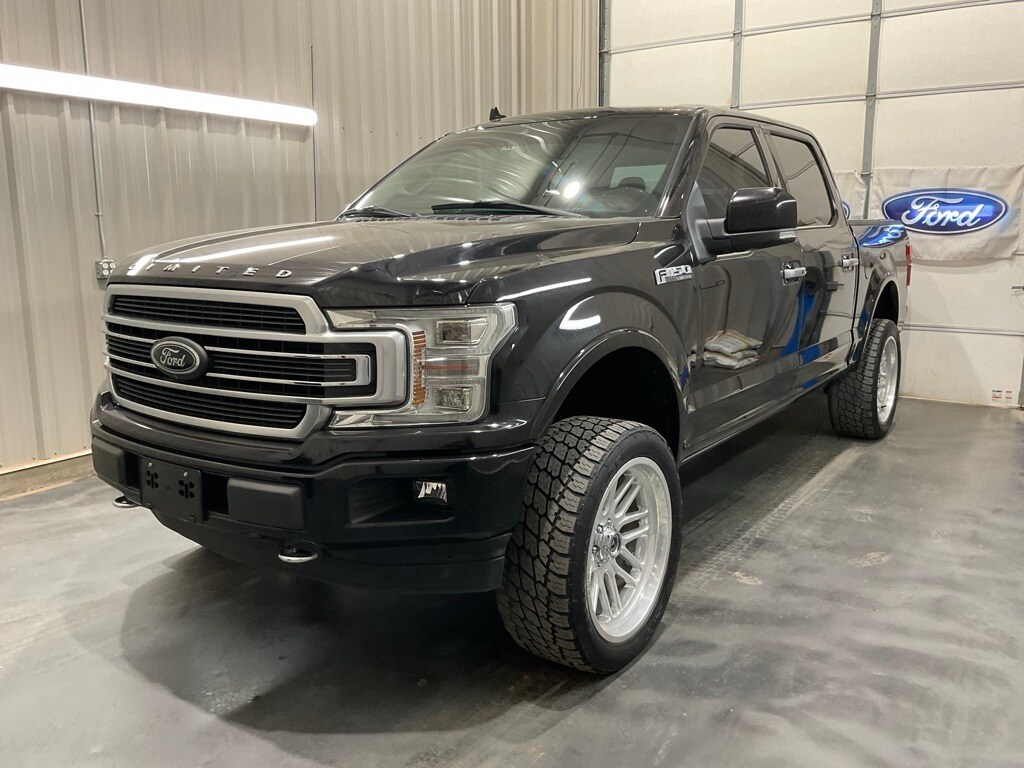 Equipment Group 900A Base, GVWR: 6,750 lbs Payload Package, Trailer Tow Package (Class IV Trailer Hitch Receiver, Engine Oil Cooler, Pro Trailer Backup Assist, and Upgraded Front Stabilizer Bar), F-150 Limited, 4D SuperCrew, 3.5L V6 EcoBoost, 4WD, Black, Camelback Leather, Navigation System, Power Moonroof, 10 Speakers, 22" Polished Aluminum Wheels, 4-Wheel Disc Brakes, ABS brakes, Adjustable pedals, Air Conditioning, Alloy wheels, AM/FM radio: SiriusXM, Auto High-beam Headlights, Auto tilt-away steering wheel, Auto-dimming door mirrors, Auto-dimming Rear-View mirror, Automatic temperature control, Brake assist, Bumpers: body-color, Compass, Delay-off headlights, Driver door bin, Driver vanity mirror, Dual front impact airbags, Dual front side impact airbags, Electronic Locking w/3.55 Axle Ratio, Electronic Stability Control, Emergency communication system: SYNC 3 911 Assist, Front anti-roll bar, Front Bucket Seats, Front Center Armrest, Front dual zone A/C, Front fog lights, Front License Plate Bracket, Front reading lights, Front wheel independent suspension, Fully automatic headlights, Garage door transmitter, Genuine wood door panel insert, Heated door mirrors, Heated Front Seats, Heated Rear Seats, Heated steering wheel, Illuminated entry, Low tire pressure warning, Memory seat, Occupant sensing airbag, Outside temperature display, Overhead airbag, Overhead console, Panic alarm, Passenger door bin, Passenger vanity mirror, Pedal memory, Power door mirrors, Power driver seat, Power passenger seat, Power steering, Power windows, Radio data system, Radio: B&O Sound System by Bang & Olufsen, Rain sensing wipers, Rear reading lights, Rear seat center armrest, Rear step bumper, Rear View Camera, Rear window defroster, Remote keyless entry, Security system, SiriusXM Radio, Speed control, Speed-sensing steering, Split folding rear seat, Steering wheel memory, Steering wheel mounted audio controls, SYNC 3, Tachometer, Tailgate Step w/Tailgate Lift Assist, Telescoping steering wheel, Tilt steering wheel, Traction control, Trip computer, Turn signal indicator mirrors, Unique Leather Bucket Seats, Variably intermittent wipers, Ventilated front seats, Voice-Activated Touchscreen Navigation, Voltmeter, and Wheel Well Liner.