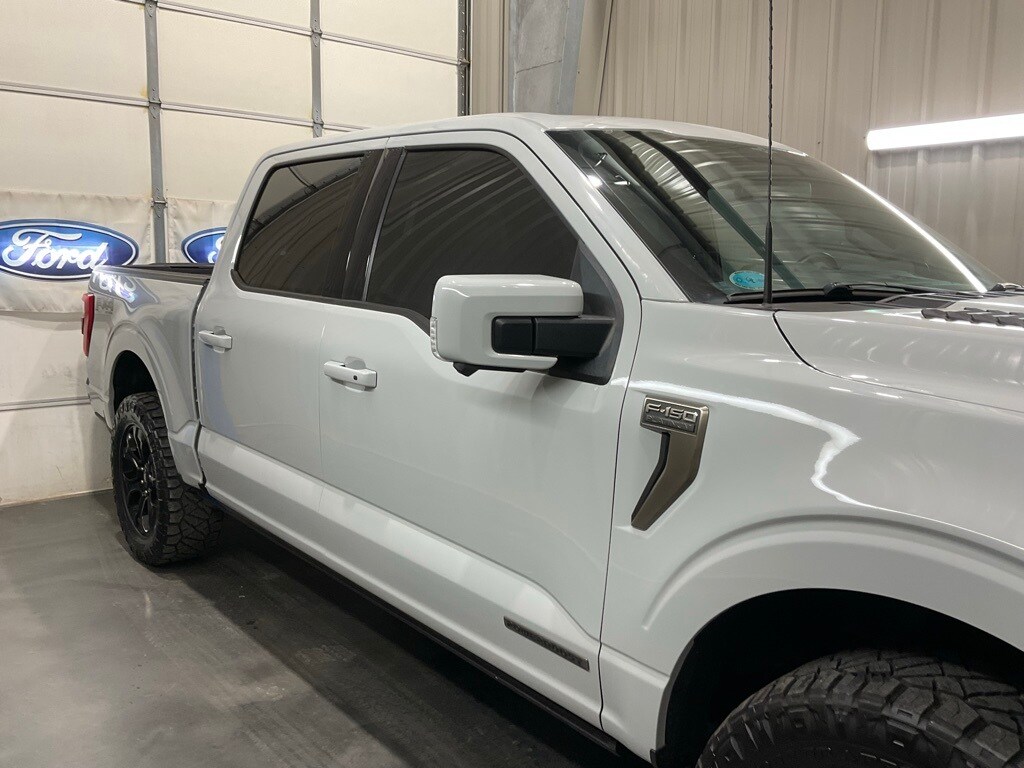 Bed Utility Package (BoxLink, LED Box Lighting, Power Tailgate, and Tailgate Step w/Tailgate Work Surface), Equipment Group 701A High (360 Degree Camera, Pro Trailer Backup Assist & Pro Trailer Hitch Assist, and Radio: B&O Unleashed Sound System by Bang & Olufsen), Ford BlueCruise 1.0 (Active Park Assist 2.0), FX4 Off-Road Package (4x4 FX4 Off-Road Bodyside Decal, Hill Start Assist, Monotube Rear Shocks, Off-Road Tuned Front Shock Absorbers, Rock Crawl Mode, and Tray Style Floor Liner), Trailer Tow Package (Class IV Trailer Hitch Receiver and Integrated Trailer Brake Controller), F-150 Platinum, 4D SuperCrew, 3.5L PowerBoost Full-Hybrid V6, 4WD, Avalanche Gray, Black Leather, 20" Polished Aluminum Wheels, 4-Wheel Disc Brakes, 8 Speakers, ABS brakes, Active Park Assist 2.0 Removal, Adjustable pedals, Air Conditioning, Alloy wheels, AM/FM radio: SiriusXM with 360L, Auto High-beam Headlights, Auto Start-Stop Removal (DISC), Auto tilt-away steering wheel, Auto-dimming door mirrors, Auto-dimming Rear-View mirror, Automatic temperature control, Brake assist, Bumpers: body-color, Compass, Delay-off headlights, Driver door bin, Driver vanity mirror, Dual front impact airbags, Dual front side impact airbags, Electronic Stability Control, Emergency communication system: SYNC 4 911 Assist, Engine Block Heater, Front anti-roll bar, Front Bucket Seats, Front Center Armrest, Front dual zone A/C, Front fog lights, Front reading lights, Front wheel independent suspension, Fully automatic headlights, Garage door transmitter, Heated door mirrors, Heated Front Seats, Heated Rear Seats, Heated steering wheel, Illuminated entry, LED Sideview Mirror Spotlights, Low tire pressure warning, Memory seat, Multicontour Seats w/Active Motion Removal, Occupant sensing airbag, Outside temperature display, Overhead airbag, Overhead console, Panic alarm, Passenger door bin, Passenger vanity mirror, Pedal memory, Power door mirrors, Power driver seat, Power passenger seat, Power steering, Power windows, Pro Power Onboard - 7.2KW, Radio data system, Radio: B&O Sound System by Bang & Olufsen, Rain sensing wipers, Rear reading lights, Rear seat center armrest, Rear step bumper, Rear View Camera, Rear window defroster, Remote keyless entry, Security system, Speed control, Speed-sensing steering, Split folding rear seat, Steering Wheel Heat Removal (DISC), Steering wheel memory, Steering wheel mounted audio controls, SYNC 4 w/Enhanced Voice Recognition, Tachometer, Telescoping steering wheel, Tilt steering wheel, Traction control, Trip computer, Turn signal indicator mirrors, Twin Panel Moonroof, Unique Multi-Contour Leather Bucket Seats, Variably intermittent wipers, Ventilated front seats, Voltmeter, and Wheel Well Liner.