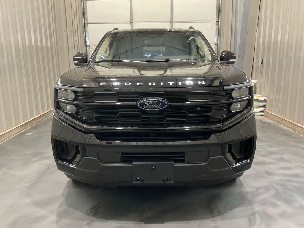 Equipment Group 202A High Package (Power Panoramic Vista Roof w/Power Sunshade, 110V/400W AC Power Outlet, 26mm Engine Radiator, 2nd Row Power-Folding Captain's Chairs, 360-Degree Zone Lighting, 3rd Row Flexible Seating, 3rd Row Vinyl Seats, 4-Door Intelligent Access (Lock/Unlock), ActiveX Front Heated Captain's Chairs, BlueCruise Equipped, Flex Powered Console, Ford Split Gate, Front Side Laminated Glass, Heated Steering Wheel, Heavy-Duty Trailer Tow, Integrated Trailer Brake Control, Memory Driver Seat, Power Tilt/Telescopic Steering Wheel w/Memory, Power-Folding Sideview Mirrors w/Autofold, Rain Sensing Wipers, SecuriCode Keyless Entry Pad, Universal Garage Door Opener, USB Ports, Wheels: 20" Carbonized Gray Bright Machined Aluminum, and Wireless Charging Pad), Expedition Active, 4D Sport Utility, EcoBoost 3.5L V6 GTDi DOHC 24V Twin Turbocharged, 4WD, Black Metallic, Dark Gray Leather, Navigation System, 3.73 Axle Ratio, 3rd row seats: split-bench, 4-Wheel Disc Brakes, 6 Speakers, ABS brakes, Air Conditioning, Alloy wheels, AM/FM radio: SiriusXM with 360L, Apple CarPlay/Android Auto, Auto High-beam Headlights, Auto-dimming Rear-View mirror, Automatic temperature control, Brake assist, Bumpers: body-color, Cloth Front Captain's Chairs, Compass, Delay-off headlights, Driver door bin, Driver State Detection, Driver vanity mirror, Dual front impact airbags, Dual front side impact airbags, Electronic Stability Control, Emergency communication system: 911 Assist, Four wheel independent suspension, Front anti-roll bar, Front Bucket Seats, Front Center Armrest, Front dual zone A/C, Front License Plate Bracket, Front reading lights, Fully automatic headlights, Heated door mirrors, Illuminated entry, Intersection Assist, Low tire pressure warning, Occupant sensing airbag, Outside temperature display, Overhead airbag, Overhead console, Panic alarm, Passenger door bin, Passenger vanity mirror, Power door mirrors, Power driver seat, Power passenger seat, Power steering, Power windows, Radio data system, Radio: AM/FM Stereo w/MP3 Capable, Rear air conditioning, Rear anti-roll bar, Rear reading lights, Rear View Camera, Rear window defroster, Rear window wiper, Reclining 3rd row seat, Remote keyless entry, Security system, SiriusXM w/360L, Speed control, Speed-sensing steering, Speed-Sensitive Wipers, Split folding rear seat, Spoiler, Steering wheel mounted audio controls, Tachometer, Telescoping steering wheel, Tilt steering wheel, Traction control, Trip computer, Variably intermittent wipers, Voltmeter, and Wheels: 18" Dark Alloy Painted Aluminum.