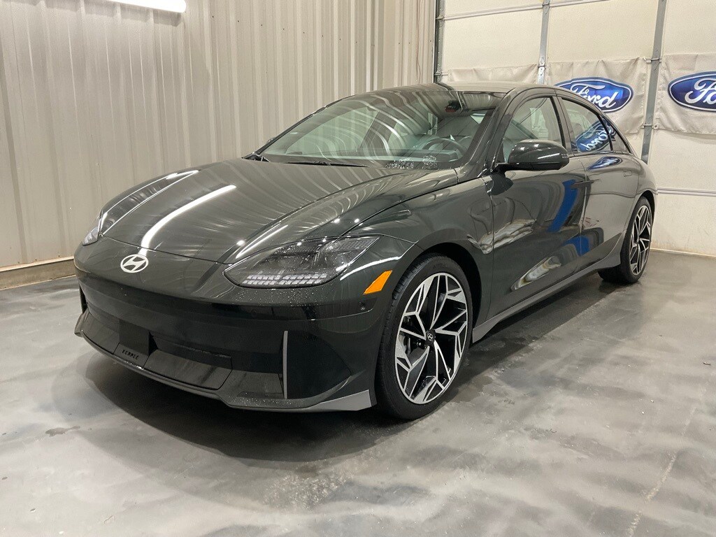 Option Group 01, IONIQ 6 Limited, 4D Sedan, Electric Motor, AWD, Digital Green, Dark Green/Gray Artificial Leather, 4-Wheel Disc Brakes, 8 Speakers, ABS brakes, Air Conditioning, Alloy wheels, AM/FM radio: SiriusXM, Apple CarPlay & Android Auto, Auto High-beam Headlights, Auto-dimming Rear-View mirror, Automatic temperature control, Brake assist, Bumpers: body-color, Carpeted Floor Mats, Delay-off headlights, Driver door bin, Driver vanity mirror, Dual front impact airbags, Dual front side impact airbags, Electronic Stability Control, Emergency communication system: Blue Link Connected Car Service (3-year complimentary subscription), Envelope Cargo Net, First Aid Kit, Four wheel independent suspension, Front anti-roll bar, Front Bucket Seats, Front Center Armrest, Front dual zone A/C, Front reading lights, Fully automatic headlights, Garage door transmitter: HomeLink, H-Tex Leatherette Seating Surfaces, Heated & Ventilated Front Bucket Seats, Heated door mirrors, Heated Front Seats, Heated steering wheel, Illuminated entry, Leather steering wheel, Low tire pressure warning, Memory seat, Navigation System, Occupant sensing airbag, Outside temperature display, Overhead airbag, Panic alarm, Passenger door bin, Passenger vanity mirror, Power door mirrors, Power driver seat, Power moonroof: Vision Sunroof, Power passenger seat, Power steering, Power windows, Radio: AM/FM/SiriusXM/HD Radio Audio System, Rain sensing wipers, Rear anti-roll bar, Rear reading lights, Rear Reversible Cargo Tray, Rear seat center armrest, Rear window defroster, Remote keyless entry, Security system, Speed control, Speed-sensing steering, Split folding rear seat, Spoiler, Steering wheel mounted audio controls, Telescoping steering wheel, Tilt steering wheel, Traction control, Trip computer, Turn signal indicator mirrors, Variably intermittent wipers, Ventilated front seats, and Wheels: 20 x 8.5J Alloy.