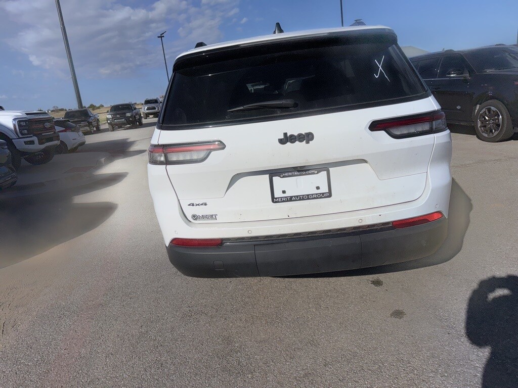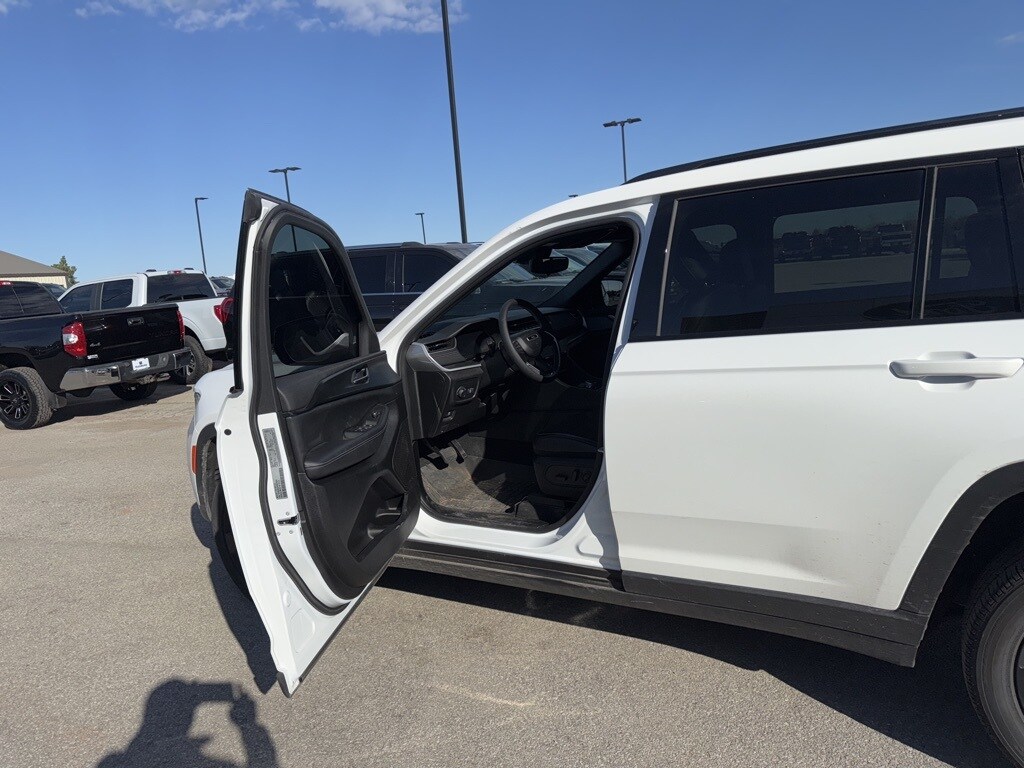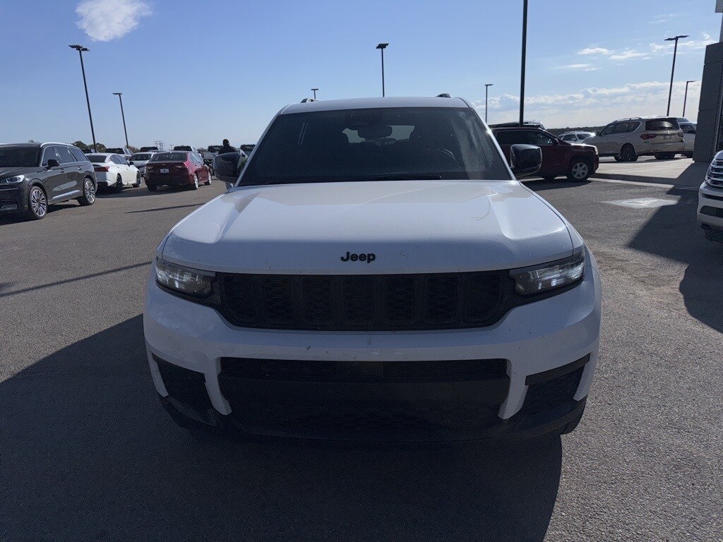 Quick Order Package 23M Altitude X (115V Auxiliary Power Outlet, 3rd Row Charge-Only USB Ports, Altitude X, Black Headliner, Capri Leatherette/Suede Seats, Delete Laredo Badge, Gloss Black Exterior Accents, Heated Front Seats, Heated Steering Wheel, Power Liftgate, Power Sunroof, Rain Sensitive Windshield Wipers, Remote Start System, Selectable Tire Fill Alert, Wheels: 18" x 8.0" Fully Painted Aluminum 1, and Wireless Charging Pad), Grand Cherokee L Altitude X, 4D Sport Utility, 3.6L V6 24V VVT, 4WD, Bright White Clearcoat, Global Black Artificial Leather, 3.45 Rear Axle Ratio, 3rd row seats: split-bench, 4-Wheel Disc Brakes, 6 Speakers, ABS brakes, Air Conditioning, Alloy wheels, Anti-whiplash front head restraints, Automatic temperature control, Brake assist, Bumpers: body-color, Cloth Seats, Compass, Delay-off headlights, Driver door bin, Driver vanity mirror, Dual front impact airbags, Dual front side impact airbags, Electronic Stability Control, Emergency communication system, Four wheel independent suspension, Front anti-roll bar, Front Bucket Seats, Front Center Armrest w/Storage, Front dual zone A/C, Front reading lights, Fully automatic headlights, Heated door mirrors, Illuminated entry, Knee airbag, Low tire pressure warning, Manual Fold Seatbacks, Normal Duty Suspension, Occupant sensing airbag, Outside temperature display, Overhead airbag, Overhead console, Panic alarm, ParkView Rear Back-Up Camera, Passenger door bin, Passenger vanity mirror, Power door mirrors, Power driver seat, Power steering, Power windows, Radio data system, Radio: Uconnect 5 w/8.4" Display, Rear air conditioning, Rear anti-roll bar, Rear reading lights, Rear window defroster, Rear window wiper, Reclining 3rd row seat, Remote keyless entry, Security system, Speed control, Speed-Sensitive Wipers, Split folding rear seat, Spoiler, Steering wheel mounted audio controls, Tachometer, Telescoping steering wheel, Tilt steering wheel, Traction control, Trip computer, Variably intermittent wipers, Voltmeter, Wheels: 18" x 8.0" Fully Painted Aluminum, and Wheels: 20" x 8.5" Gloss Black Painted Aluminum.