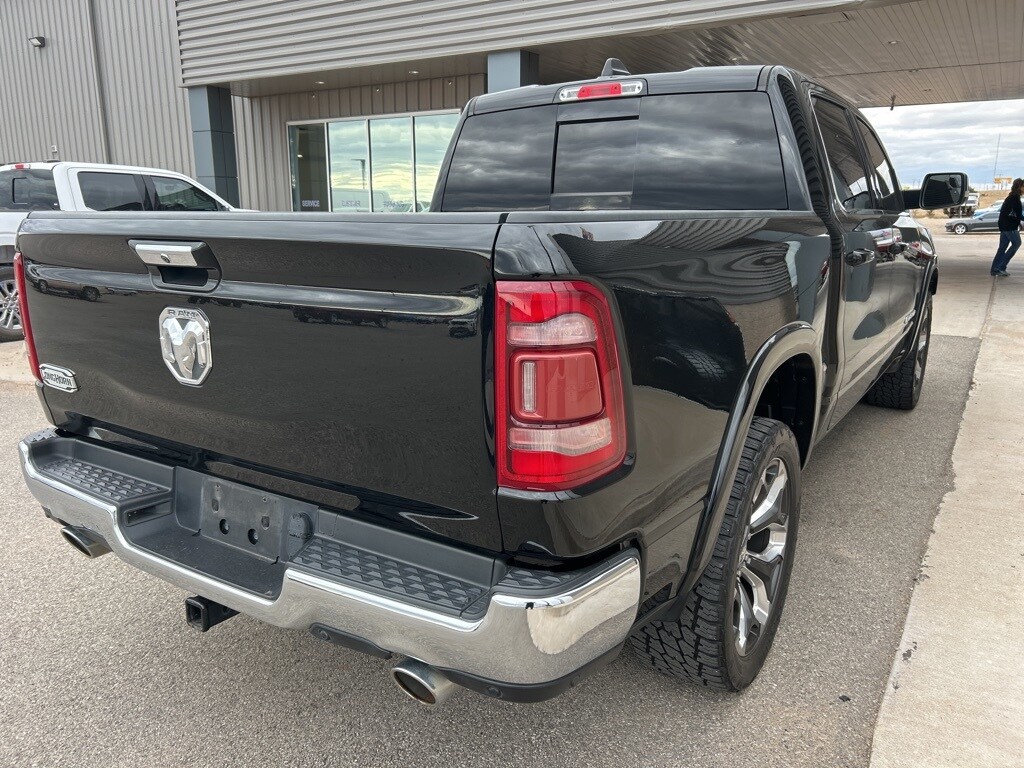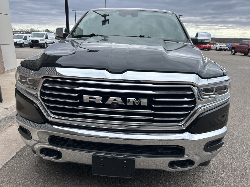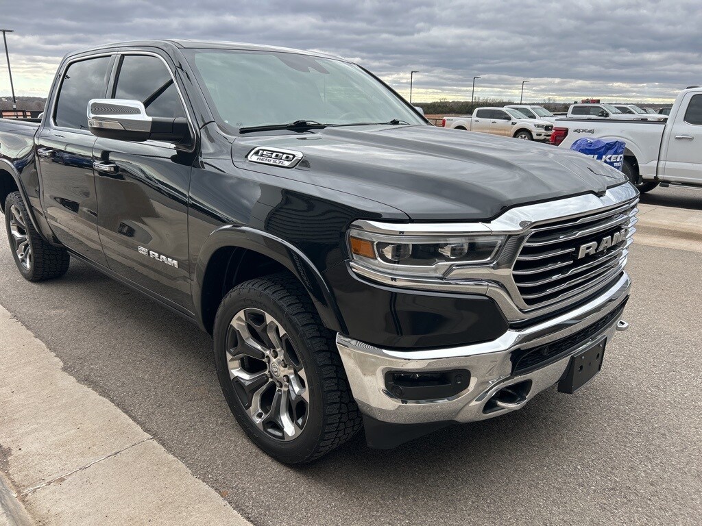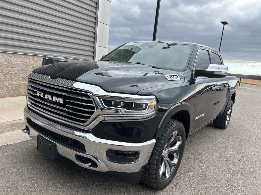 Advanced Safety Group (Adaptive Cruise Control w/Stop & Go, Full Speed Forward Collision Warning Plus, Lane Keep Assist, and Parallel & Perp Park Assist w/Stop), Longhorn Level 1 Equipment Group (1-Yr SiriusXM Guardian Trial, 12" Touchscreen Display, 4G LTE Wi-Fi Hot Spot, 5-Year SiriusXM Travel Link Service, Apple CarPlay, Blind Spot & Cross Path Detection, Disassociated Touchscreen Display, Foam Bottle Insert (Door Trim Panel), For Details, Visit DriveUconnect.com, Google Android Auto, GPS Antenna Input, GPS Navigation, harman/kardon 19 Speaker Premium Sound, HD Radio, Integrated Center Stack Radio, No Satellite Coverage w/HI/AK/PR/VI/GU, Power Running Boards, Radio: Uconnect 12 w/Navigation, SiriusXM Satellite Radio, SiriusXM Traffic Plus, SiriusXM Travel Link, SiriusXM w/360L, USB Host Flip, Ventilated Rear Seats, and Wireless Charging Pad), Protection Group, Quick Order Package 25K Longhorn, 1500 Laramie Longhorn, 4D Crew Cab, HEMI 5.7L V8 Multi Displacement VVT, 4WD, Diamond Black Crystal Pearlcoat, Lt Mountain Brown/Brown Leather, #1 Seat Foam Cushion, 10 Speakers, 3 Rear Seat Head Restraints, 4 Way Front Headrests, 4-Corner Air Suspension, 4-Wheel Disc Brakes, 48V Belt Starter Generator, ABS brakes, Adjustable pedals, Air Conditioning, Alloy wheels, AM/FM radio: SiriusXM, Anti-Spin Differential Rear Axle, Apple CarPlay/Android Auto, Audio memory, Auto High-beam Headlights, Auto-dimming door mirrors, Auto-dimming Rear-View mirror, Automatic temperature control, Brake assist, Bucket Seats, Bumpers: chrome, Compass, Delay-off headlights, Dome Dual LED Reading Lamp, Driver door bin, Driver Seat Memory, Driver vanity mirror, Dual front impact airbags, Dual front side impact airbags, Dual-Pane Panoramic Sunroof, Electronic Stability Control, Emergency communication system: SiriusXM Guardian, Front anti-roll bar, Front Bucket Seats, Front Center Armrest w/Storage, Front dual zone A/C, Front fog lights, Front reading lights, Front Seat Back Map Pockets, Front wheel independent suspension, Fully automatic headlights, Garage door transmitter, Genuine wood console insert, Genuine wood dashboard insert, Genuine wood door panel insert, Heated door mirrors, Heated Front Seats, Heated Front Seats, Heated Rear Seats, Heated Second Row Seats, Heated Steering Wheel, Heated steering wheel, Illuminated entry, Leather steering wheel, LED Dome/Reading Lamp, Low tire pressure warning, Memory seat, Navigation System, Occupant sensing airbag, Outside temperature display, Overhead airbag, Overhead console, Panic alarm, ParkView Rear Back-Up Camera, Passenger door bin, Passenger vanity mirror, Pedal memory, Power 4-Way Driver Lumbar Adjust, Power 4-Way Passenger Lumbar Adjust, Power 8-Way Driver & Passenger Seats, Power door mirrors, Power driver seat, Power passenger seat, Power steering, Power windows, Premium Leather Seats w/Filigree, Radio data system, Radio: Uconnect 4C Nav w/8.4" Display, Rain sensing wipers, Rear 60/40 Folding Split Recline Seat, Rear anti-roll bar, Rear seat center armrest, Rear step bumper, Rear window defroster, Remote keyless entry, Security system, Speed control, Split folding rear seat, Steering wheel mounted audio controls, Tachometer, Telescoping steering wheel, Tilt steering wheel, Traction control, Trailer Brake Control, Trip computer, Turn signal indicator mirrors, Variably intermittent wipers, Ventilated Front Seats, Ventilated front seats, Voltmeter, Wheels: 20" x 9" Aluminum Painted/Polished, and Wheels: 22" x 9" Polish/Painted w/InsertS.